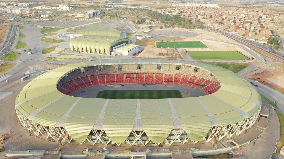 由中國中冶承建的阿爾及利亞奧蘭體育場項目總占地面積29萬平方米,總建筑面積約5.9萬平方米,建成后將成為阿爾及利亞第一座現代化標準的綜合性體育場。作為奧蘭省地標性建筑,該項目是奧蘭省乃至阿爾及利亞西部地區最大、最現代化的多功能綜合體育場,承辦了2022年泛地中海運動會。