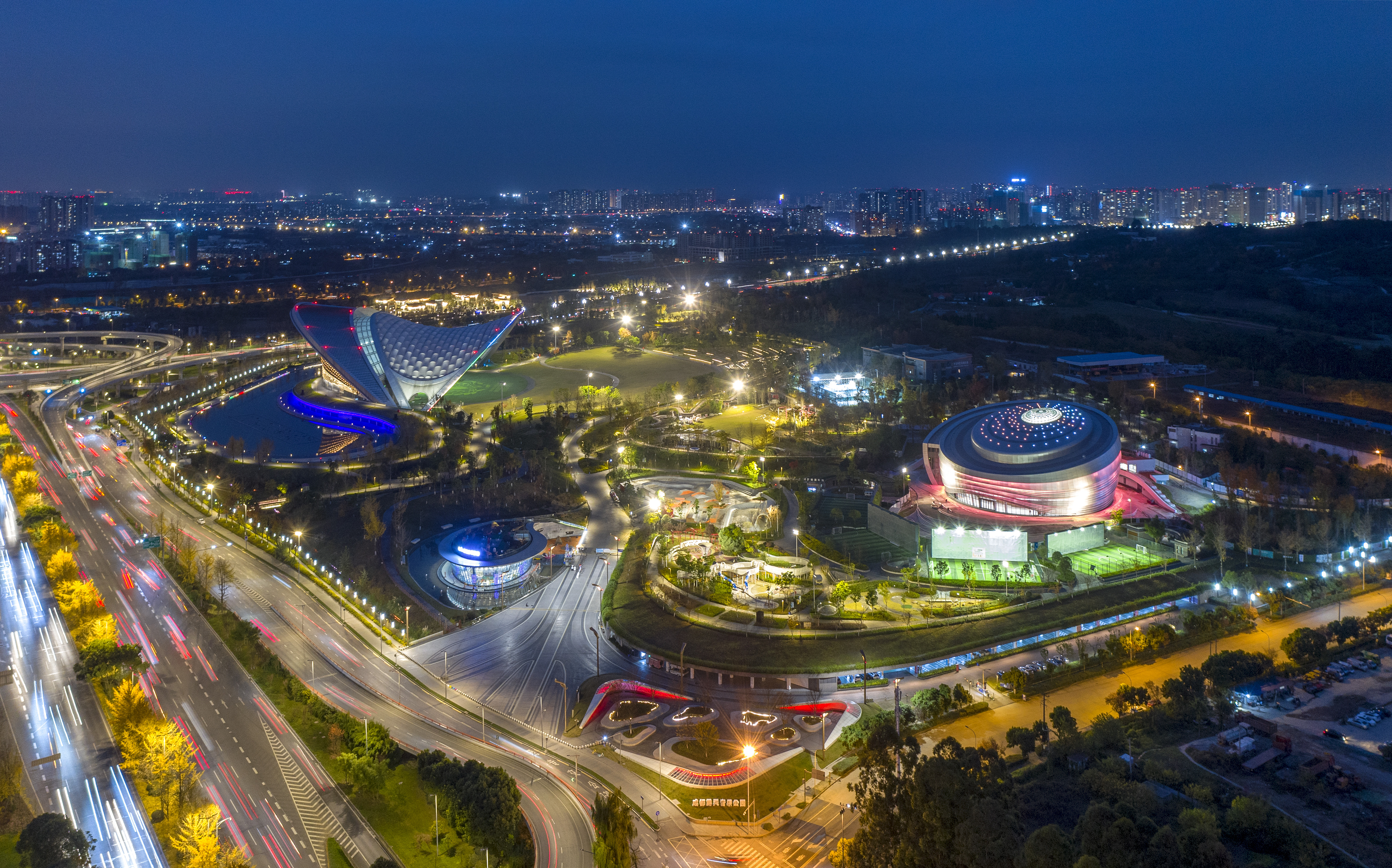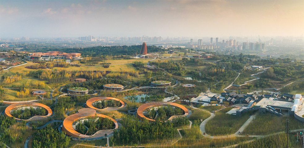 由中國五冶承建的成都東安湖公園項目是成都世界大運會體育公園重要組成部分,也是第31屆世界大學生運動會主會場的核心配套項目,占地面積近6000畝,包含“一湖一環七島十二景”以及大運會主火炬塔,榮獲中國土木工程詹天佑獎和中國建設工程魯班獎,已入選國家住建部首批《智能建造新技術新產品創新服務典型案例》。